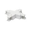 "+" cross connector for joining four sections of 220V electrified track in a central configuration.