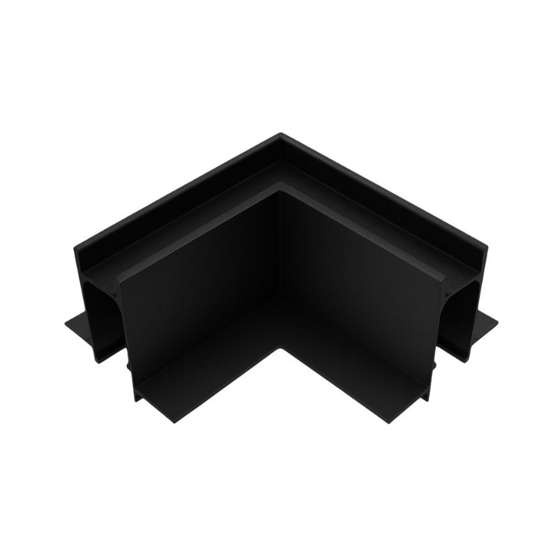 90° flat corner for MHTA4 magnetic track. Designed for direction changes with electrical continuity in surface or suspended mounting.