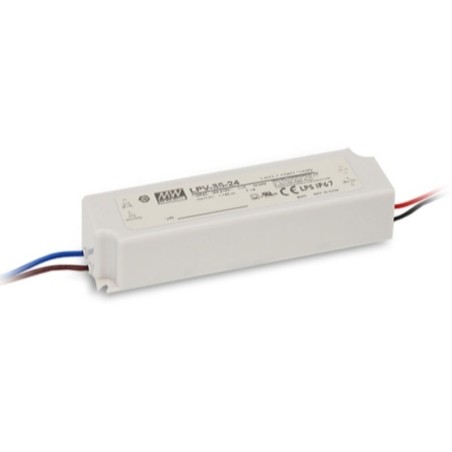 The MEAN WELL LPV-35-24 power supply is a compact and reliable solution for powering LED strips and medium-power signaling systems. Its sealed plastic housing with IP67 protection ensures safe performance in environments exposed to dust, humidity, and harsh conditions, making it suitable for both indoor and outdoor applications.
