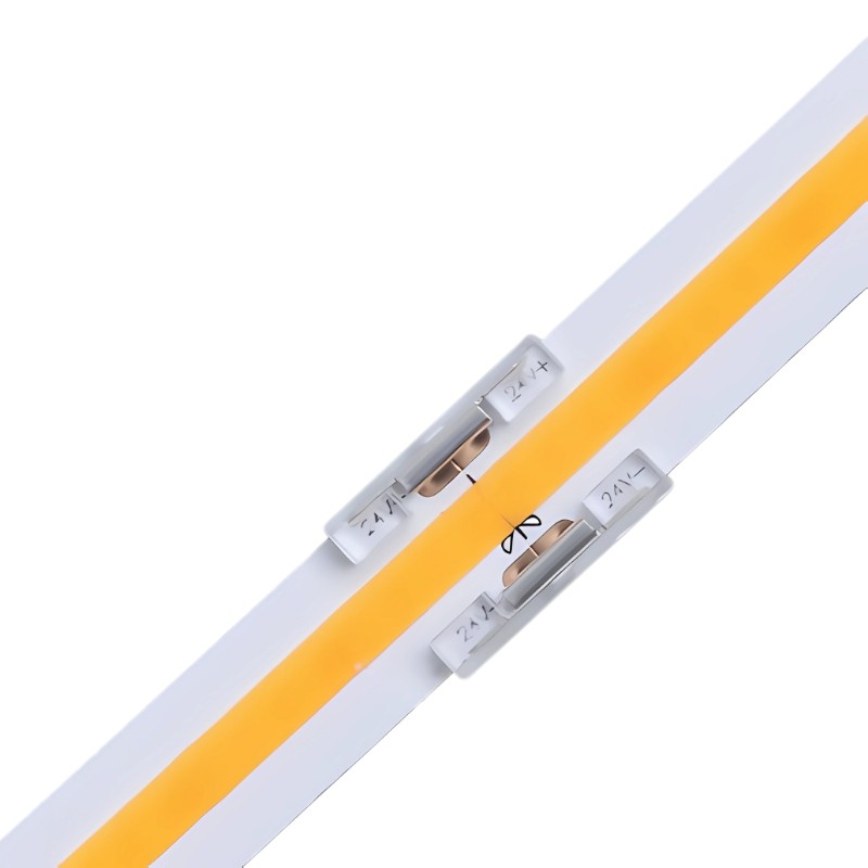 Quick polycarbonate connector designed to directly join two 10mm LED strips without soldering.
