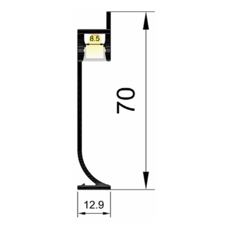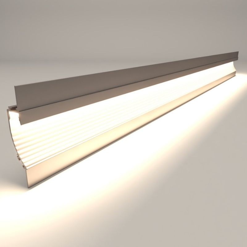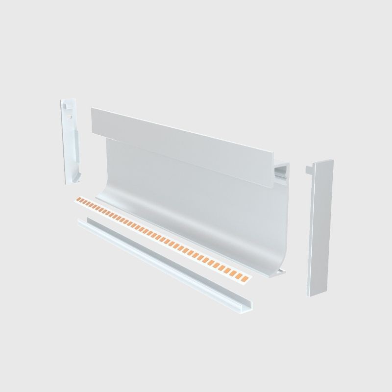 Aluminum profile for commercial and decorative interior lighting. Made of aluminum with an anodized finish. Compatible with LED strips up to 6 mm thick and featuring an elegant design that allows for discreet integration into any space.