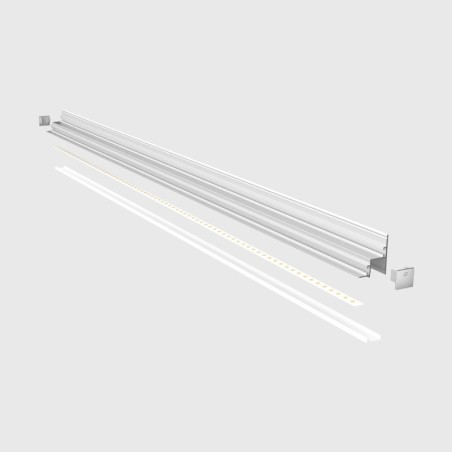 Aluminum profile for commercial and decorative interior lighting. Made of aluminum with an anodized finish. Compatible with LED strips up to 18 mm and featuring an elegant design that allows for discreet integration into any space.