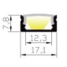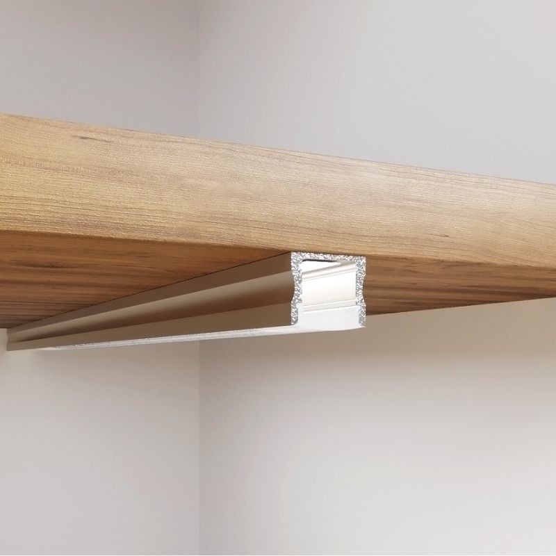 Aluminum profile for commercial and decorative interior lighting. Made of aluminum with an anodized finish. Compatible with LED strips up to 12 mm and featuring an elegant design that allows for discreet integration into any space.
