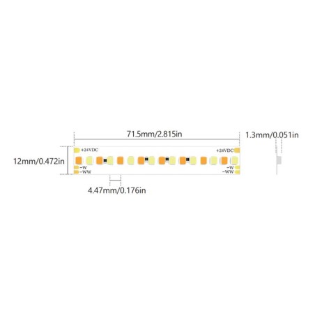 The VISCOM LEDS AND FRAMES V224F24I-CCT LED Strip allows you to adjust the color temperature between warm white (2700K), neutral white (4000K), and cool white (6000K), adapting to each moment of the day or the needs of the environment. Thanks to its design with 224 LEDs per meter and SMD 2835 technology, it offers continuous, homogeneous, and shadow-free lighting.