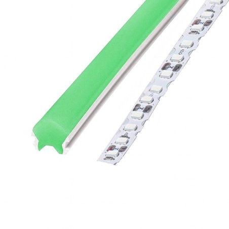 GREEN NEON COMBO pack with a 120-LED/m LED strip (9W, 12V) and a 1-meter silicone diffuser tube , compatible with LED strips up to 6 mm wide . Ideal for creating professional-looking neon-style light lines for decorative or commercial projects.