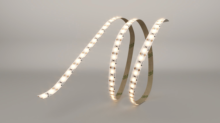 Una tira LED de alta eficiencia de 24V, 10W y 160 LEDs por metro, luce de esta forma:
