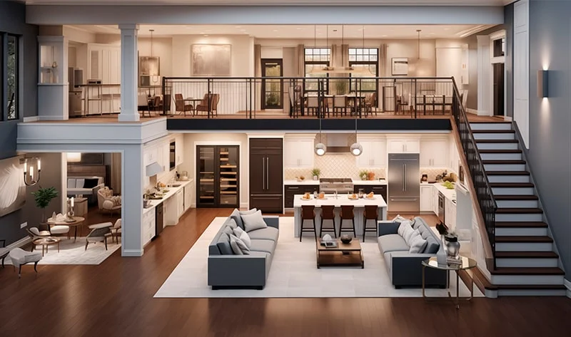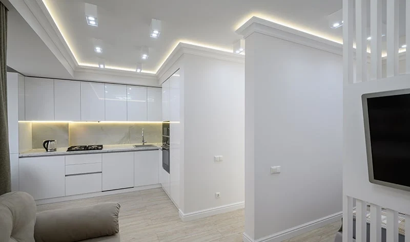 Iluminación en Techos y Cornisas: Integrar luces en techos suspendidos o cornisas permite una iluminación suave que se difunde de manera uniforme en el espacio. Esta técnica proporciona una luz ambiental agradable y contribuye a crear una atmósfera acogedora. Además, la iluminación oculta en techos puede servir para resaltar elementos arquitectónicos, como vigas o molduras.