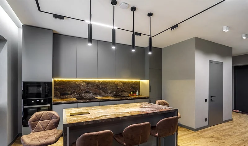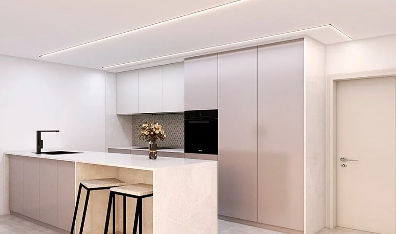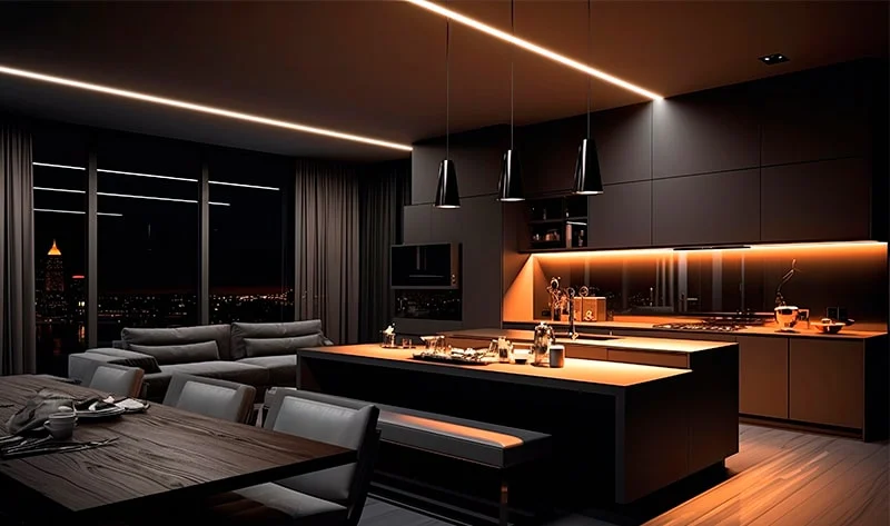 Interruptores y Controles Discretos: La tendencia incluye no solo la integración de las fuentes de luz, sino también la discreción en los controles. Los interruptores y sistemas de control suelen diseñarse de manera que se integren armoniosamente con la decoración de la cocina, ofreciendo funcionalidad sin interrumpir la estética.