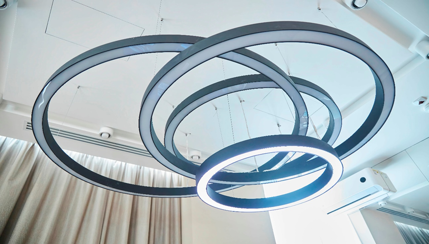En contraste con el estilo retro, el minimalismo sigue siendo una tendencia en diseño de iluminación. Luminarias de líneas simples y elegantes, a menudo en colores neutros, se utilizan para crear un aspecto limpio y contemporáneo. Las lámparas colgantes con formas geométricas y diseños esculturales son especialmente populares.