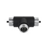 Conector en forma de T con ángulo de 90° para unir tres perfiles del sistema INFINITY, manteniendo alineación y continuidad eléctrica.