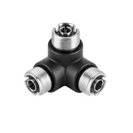 Conector de 4 salidas en ángulo de 90° para el sistema INFINITY, permite unir perfiles en forma de cruz o T según la instalación.