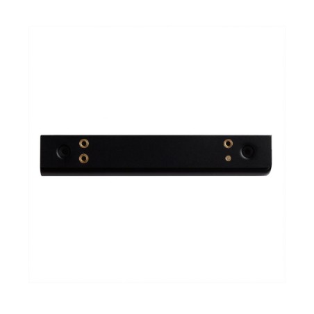 Conector lineal que une dos tramos de carril NANO garantizando continuidad mecánica y eléctrica en 24?V DC.
