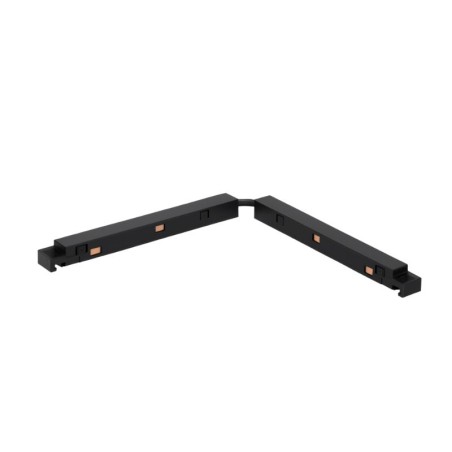 Conector en ángulo de 90° para cambiar la dirección del carril NANO manteniendo la continuidad eléctrica del sistema a 24?V DC.