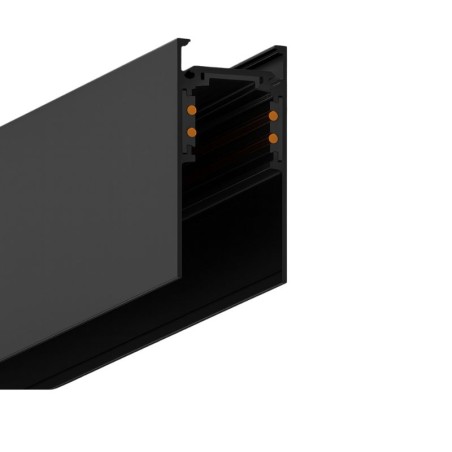 Carril magnético de baja tensión (48 V) para instalación en techo o suspensión, fabricado en aluminio extruido con conductores de cobre y acabado en pintura epoxi.