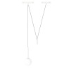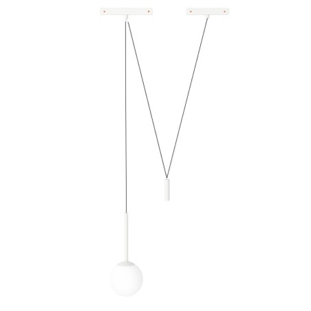 Pendant track light de diseño decorativo con globo esférico, ideal para entornos comerciales y residenciales que buscan elegancia y funcionalidad. Instalación sobre carril de 48V.