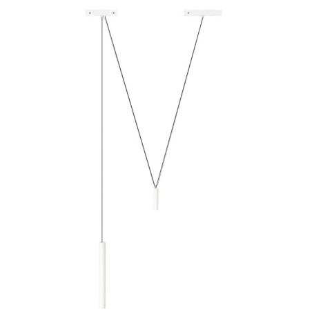 Pendant track light con diseño cilíndrico moderno, pensado para iluminación de acento en espacios contemporáneos. Funciona con carril de 48V.