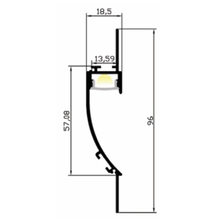 Perfil de aluminio para iluminación interior comercial y decorativa. Fabricado en aluminio, con acabado anodizado. Compatible con tiras LED de hasta 8 mm y con un diseño elegante que permite una integración discreta en cualquier espacio.