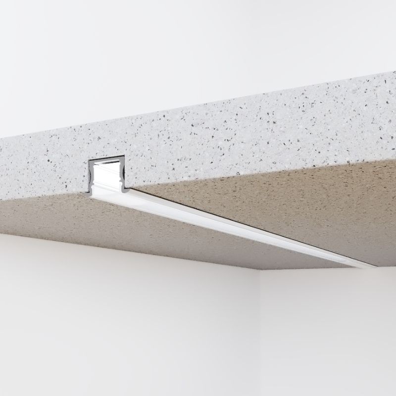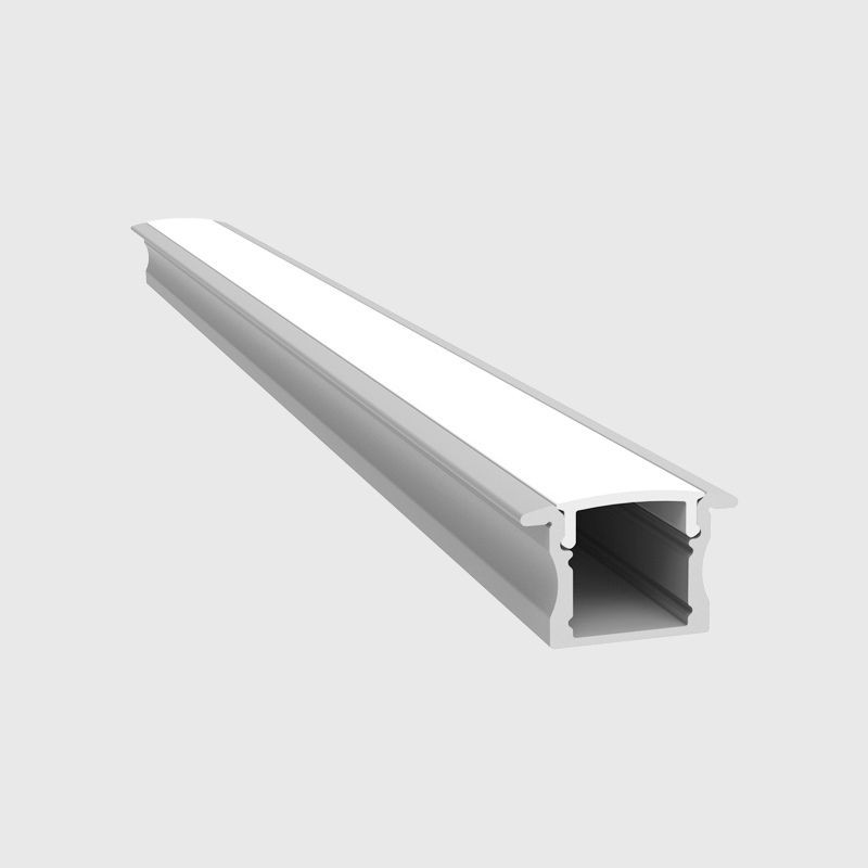 Perfil de aluminio empotrable para iluminación interior comercial y decorativa. Fabricado en aluminio, con acabado anodizado. Compatible con tiras LED de hasta 12 mm y con un diseño elegante que permite una integración discreta en cualquier espacio.