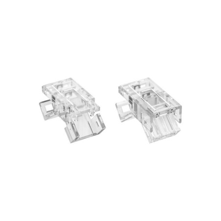 Conector eléctrico Hippo-M MAX de 8mm en forma T con 2 pines, diseñado para tiras LED COB/SMD. Permite conexión strip to wire sin soldadura, con carcasa de policarbonato transparente y pines de bronce fosforado con niquelado para una alta conductividad. Ideal para instalaciones rápidas y seguras en sistemas LED profesionales.